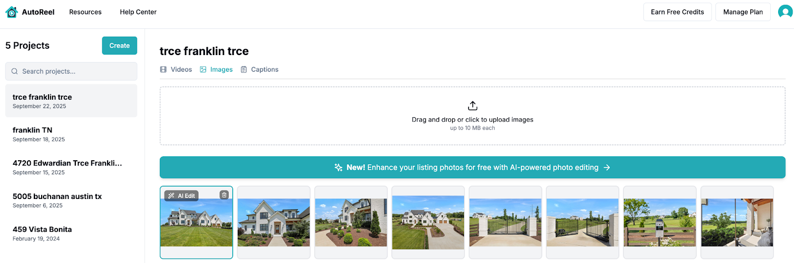 AutoReel already turns listing photos into cinematic videos in minutes. Now with Virtual Staging and AI Photo Edits built in, you can enhance photos, furnish empty rooms, and generate polished videos all in one powerful platform.
