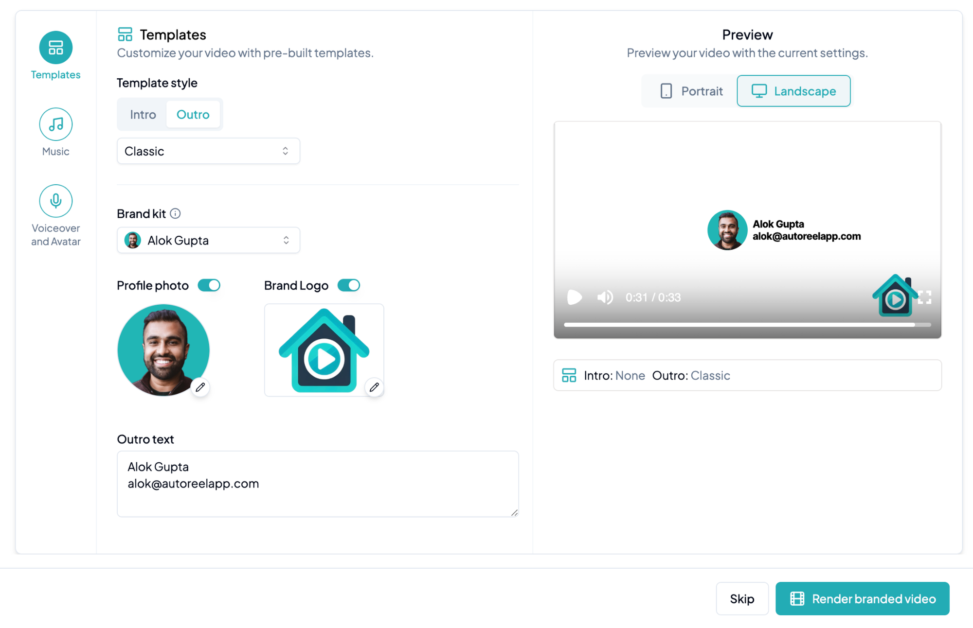 - Manage multiple profiles: Running videos for multiple agents or brands? Create separate Brand Kits for each one and switch between them instantly.
