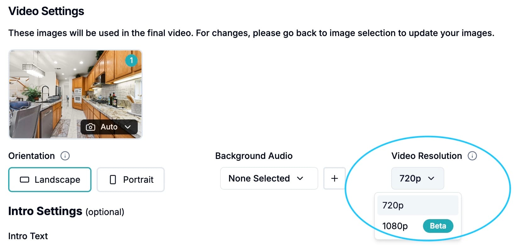 Getting Started: Simply toggle the 1080p resolution in the dropdown when creating your property video: